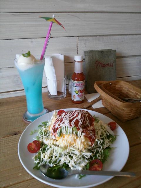 雨の日限定で注文できるというあめふりソーダとアボガド入りタコライスです、美味しかったヨv